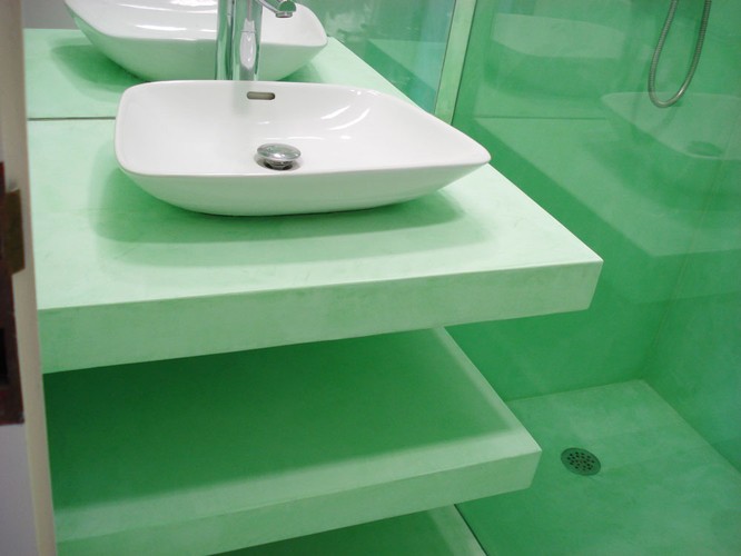 El microcemento que ofrecemos y especialmente su última capa y una de las novedades en este mercado, TOP COAT 2K EcoPlus, puede aplicarse sobre cocinas, baños, bañeras y platos de ducha, muebles, encimeras, piscinas, oficinas, empresas alimentarias, colegios, hospitales, restaurantes...