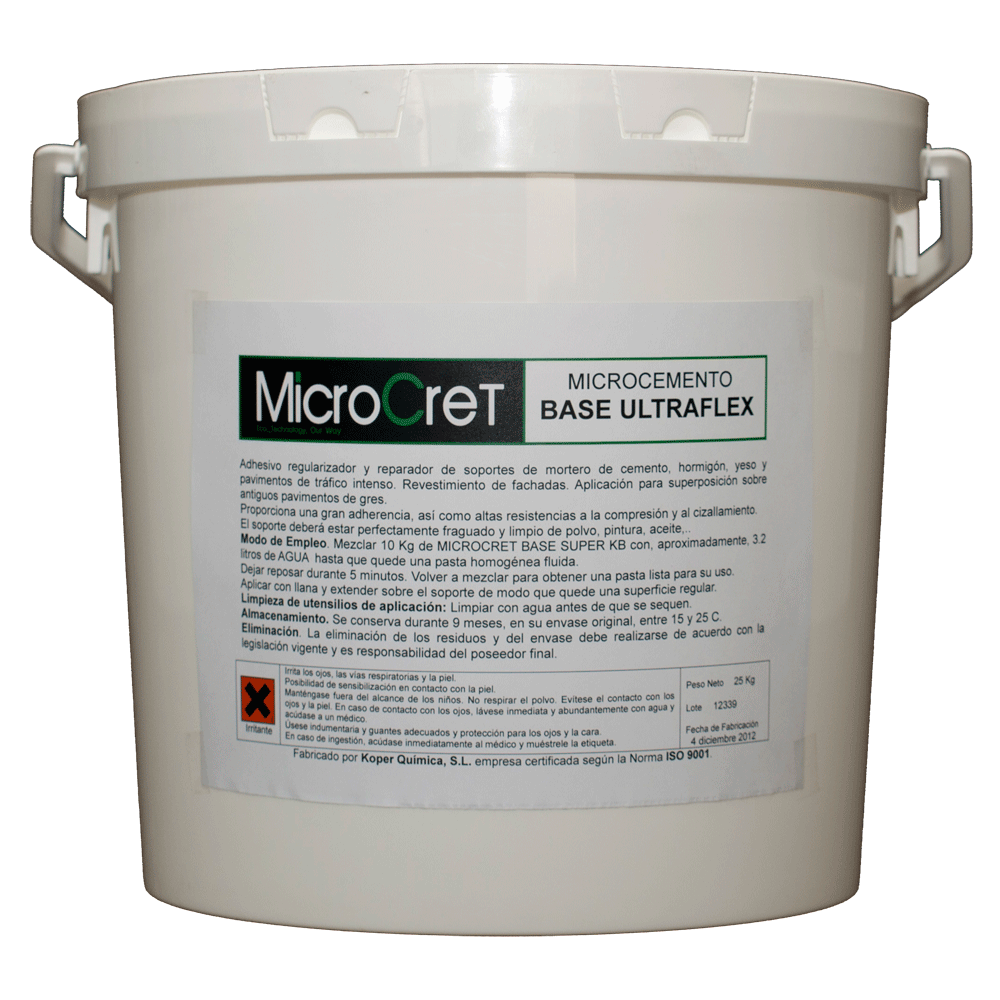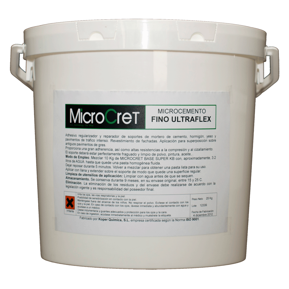 Se trata de un revestimiento cementoso para paredes y suelos, que se debe aplicar sobre Microcret Base Ultra-