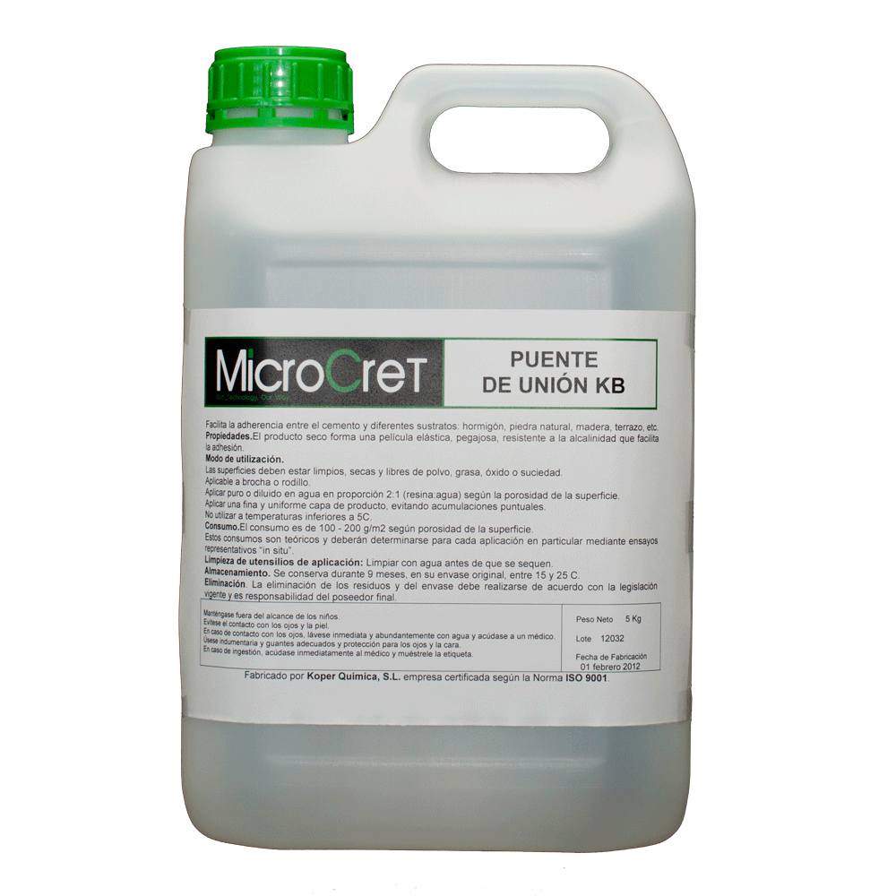 Facilita la adherencia entre el microcremento MICROCRET y el resto de sustratos, como son el cemento, el hormigón, el pladur... El Puente de Unión KB forma una película elástica, pegajosa y resistente que facilitará la adhesión de la malla al soporte ya existente.