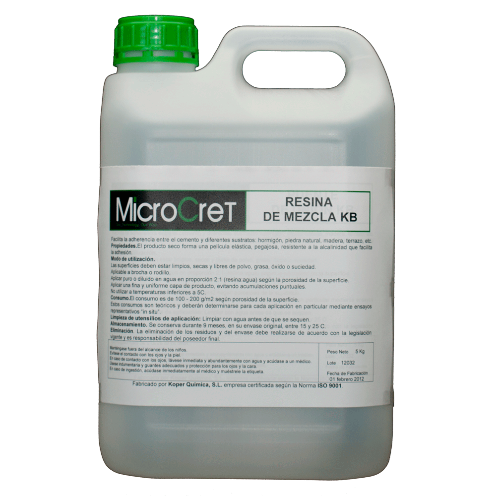 Añadiendo la Resina de Mezcla KB al microcremento MICROCRET mejoramos la adherencia, la resistencia mecánica y a las fisuras y la flexión.